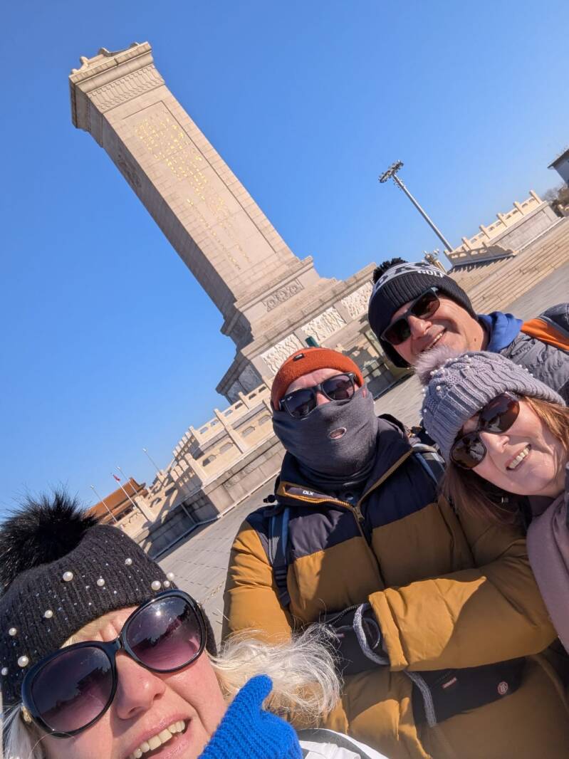 We are going on a 16 night multi centre tour of China with our friends Ann and David. Travelled to Birmingham airport in style in Platinum Travel’s new comfy mini bus, courtesy of our son in law Lee. After a fast and easy check in we started our trip in style with drinks in Bottega bar. Short hop to Frankfurt where we ate a late lunch to pass the time before a 9 hour Air China flight to Beijing. We arrived at 11.30am China time, very tired but excited. Met by our guide Brian (he liked the singer Bryan Adams!) Our hotel for the next 4 days is Hilton by Double Tree. Spacious room with a very Chinese glass cube bathroom. Unfortunately, our privacy blind didn’t work, so a good job we’re not shy!!!