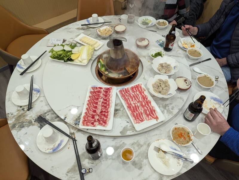 Afterwards we went to a local hot pot restaurant. It was certainly an experience. You had to cook your own food in a charcoal fired pot filled with oil, water and spices. It was lots of fun and again very cheap, under £10 per head including beer.