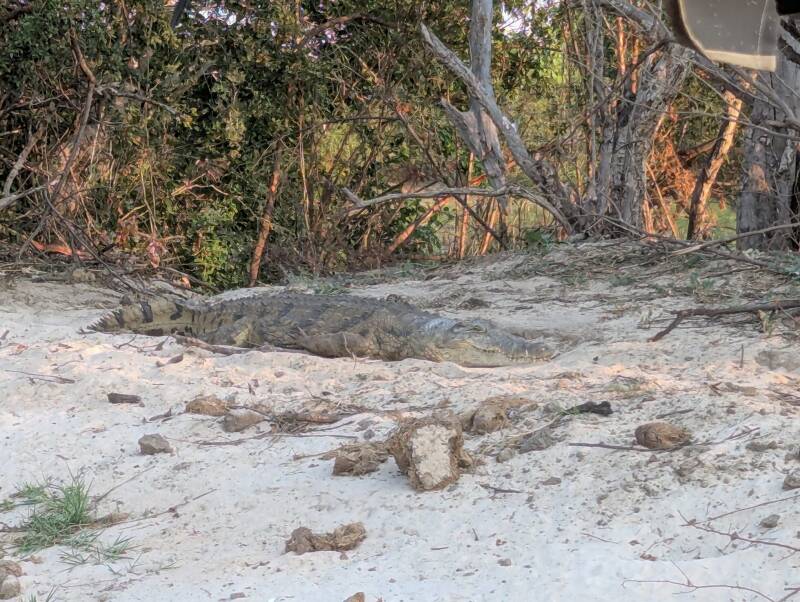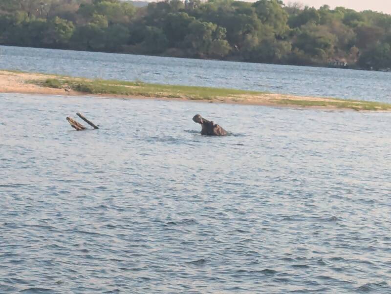 After lunch we saw Hippos and Crocs in the lake, but most amazingly a big bull Elephant having a bath.